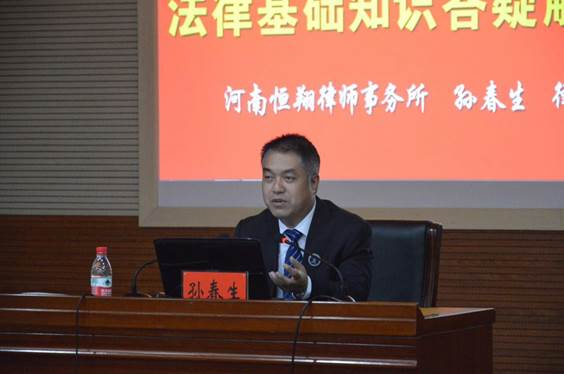 孫春生律師結(jié)合官兵工作實(shí)際,向他們普及了法律基本知識(shí),介紹刑法、行政訴訟、民事訴訟法律基礎(chǔ)常識(shí),重點(diǎn)講解生活中較為常見(jiàn)的民事法律糾紛及如何打官司等,講課與實(shí)際案例相結(jié)合,深入淺出,內(nèi)容貼近實(shí)際,語(yǔ)言通俗易懂,受到廣大官兵的熱烈歡迎和一致好評(píng)。